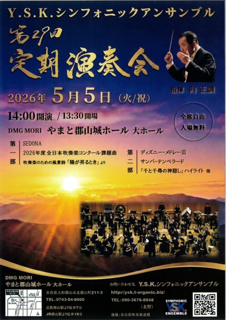 Y.S.K.シンフォニックアンサンブル 第29回定期演奏会(全席自由/入場無料)